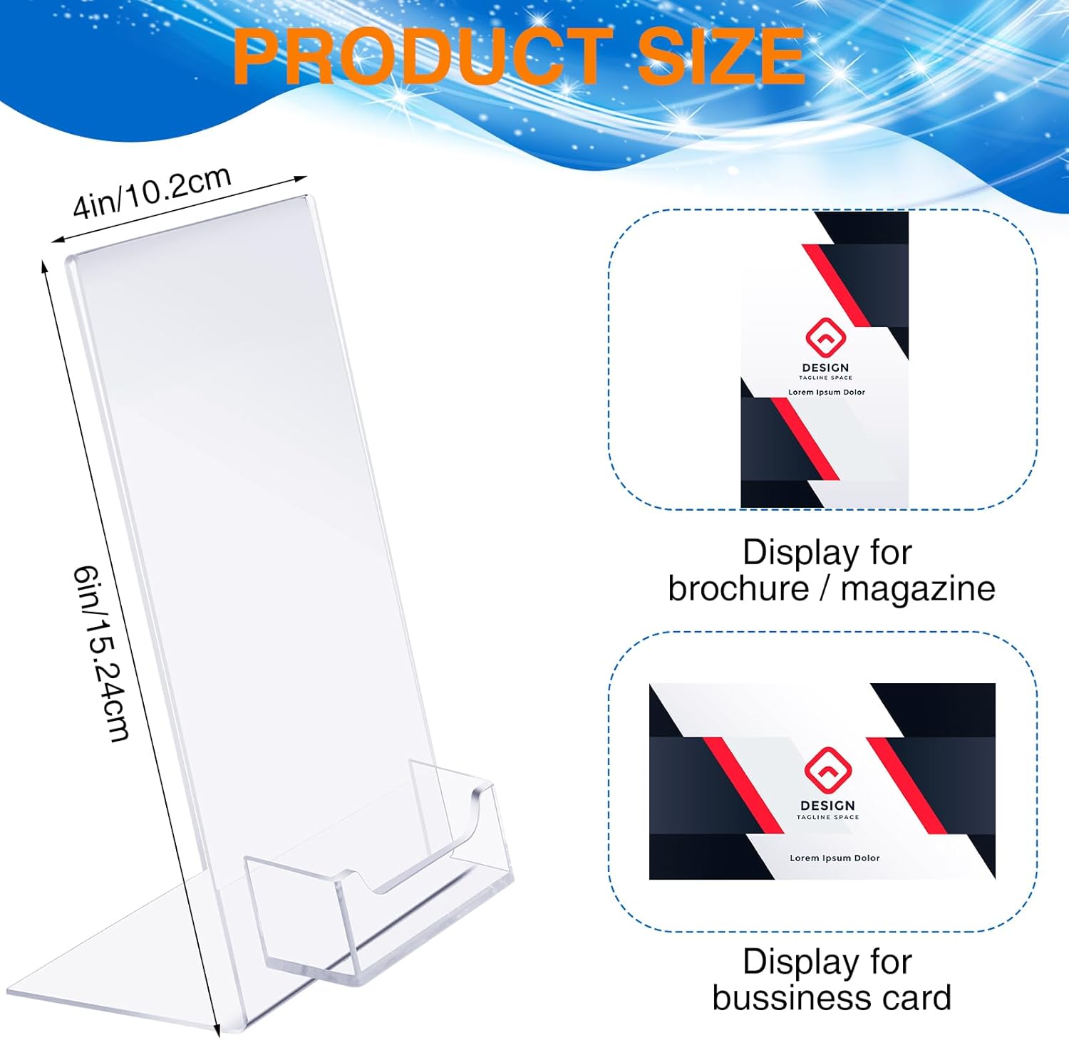 Features: Good performance: Our heavy duty plastic signs stand has fine workmanship, and the transparent appearance does not affect the aesthetics, will give you a good using experience. Considerate presents: If you have friends who need some sign stands for display in the daily life, you can give them ours, they will like these gifts and feel happy. Specifications: Material: acrylic Color: clear Size: approx. 4 x 6 inches Package includes: 12 x Sign holder with business card holder Notes: Manual measurement, please allow slight errors on size. The color may exist slight difference due to different screen displays.